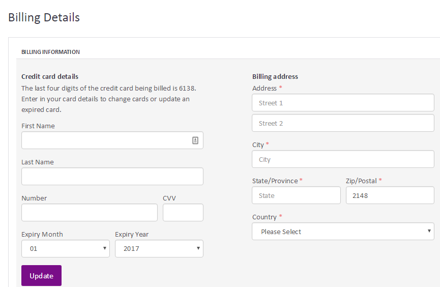 NB: Billing runs on the 1st of each month, and an invoice will be sent to your email address.